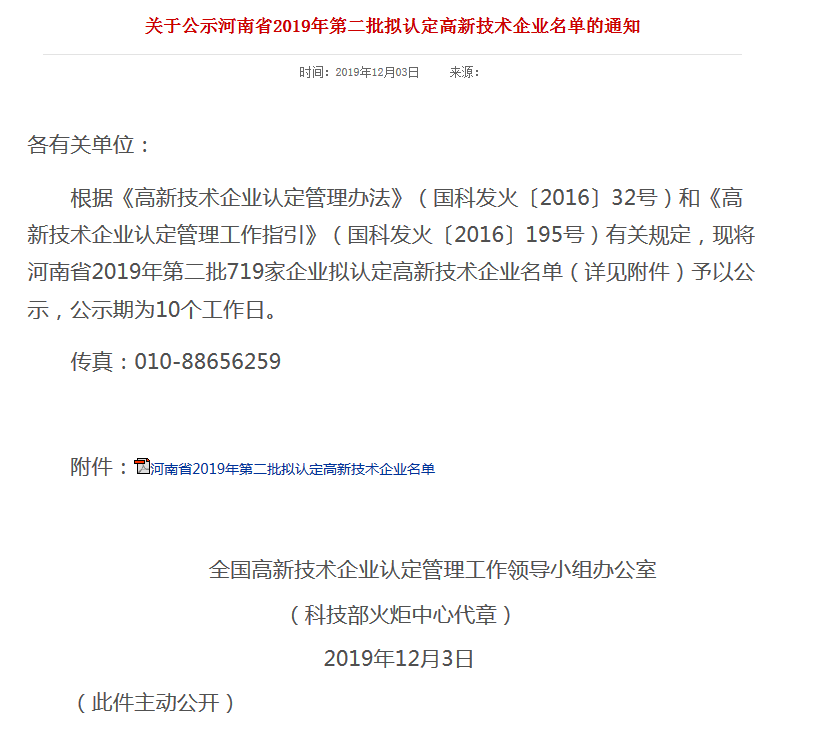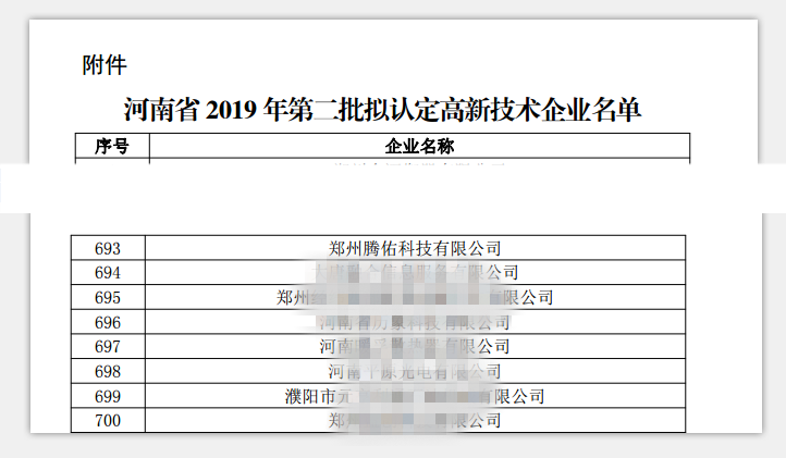 恭喜腾佑科技成功入围河南省2019年第二批拟认定高新技术企业名单