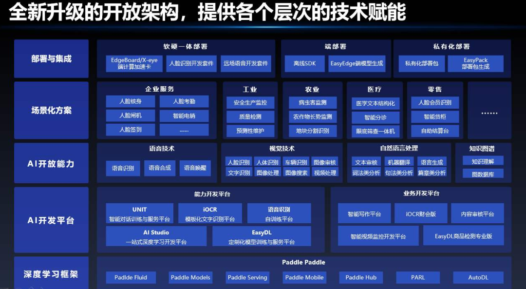 飞桨以百度多年的深度学习技术研究和业务应用为基础,集深度学习核心框架、基础模型库、端到端开发套件、工具组件和服务平台于一体,2016 年正式开源,是全面开源开放、技术领先、功能完备的产业级深度学习平台。飞桨源于产业实践,始终致力于与产业深入融合。
