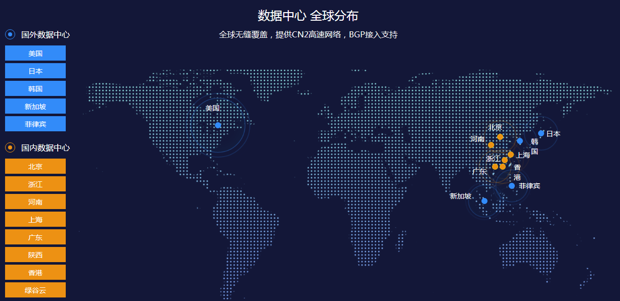 结合不同国家的情况以及科技发展速度,海外服务器机房只要部署的地方有日本,美国,韩国,新加坡,菲律宾等国家。