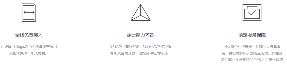 API调用全部免费:针对人脸检测、人脸对比、人脸搜索三款产品。