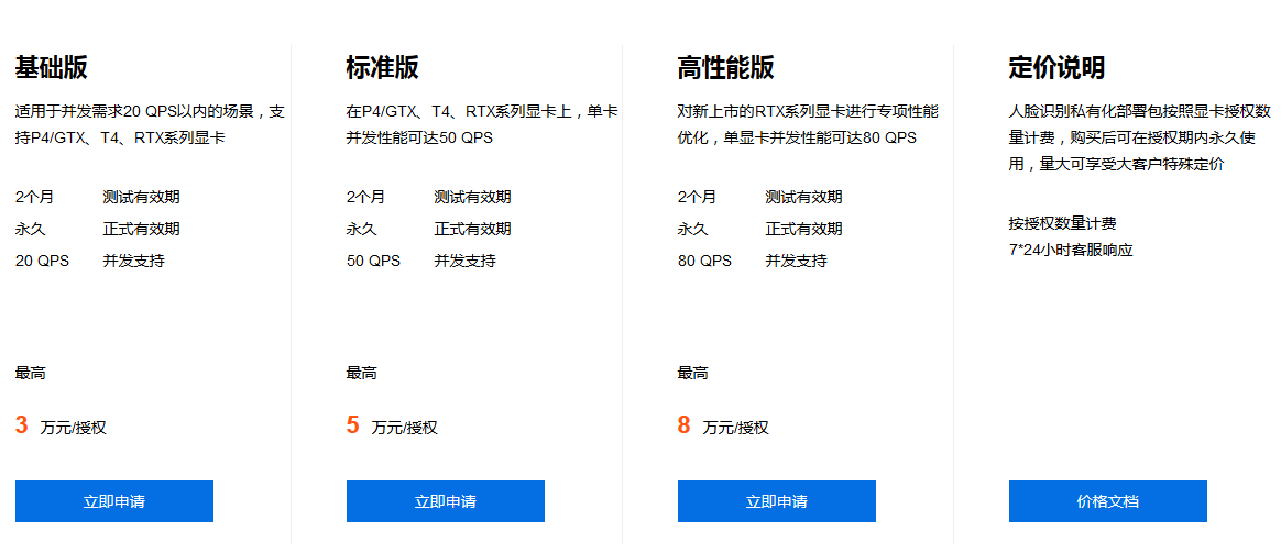 人脸支付的第一步就是先准备人脸识别sdk系统,然后私有化部署。人脸识别sdk系统的价格版本如下: