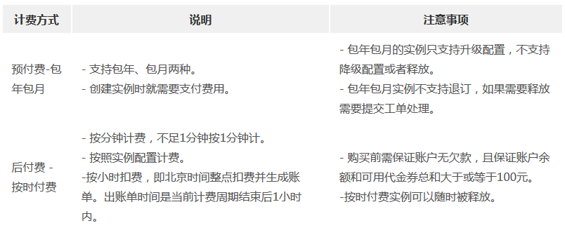RDS支持预付费和后付费两种计费方法,详细的计费规则说明如下: