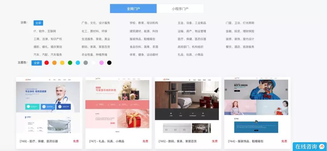 百度智能门户【AIPage】针对不同行业商家与企业配备各式模板,并针对行业特性,各有其特色,让你的网站更具个性,牢牢吸引用户注意。