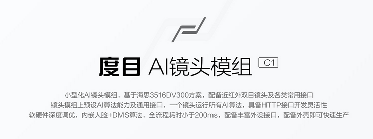 简述:度目AI镜头模组将AI算法及部分业务应用,集成到镜头模块中,使AI算法应用更标准化,更便捷化的小巧镜头模组。度目AI镜头模组产品亮点手指大小的镜头模组,适用于单人或少量人的人脸应用场景,一般推荐5人以