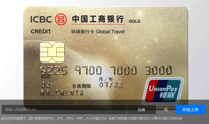 银行卡文字识别接口离线和在线的区别是什么?银行卡识别对主流银行卡的卡号、有效期、发卡行、卡片类型4个关键字段进行结构化识别,识别准确率超过99%。