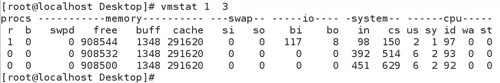 vmstat工具的使用是通过两个数字参数来完成的,第一个参数是给定的时间间隔数,单位是秒,第二个参数是查看的次数。