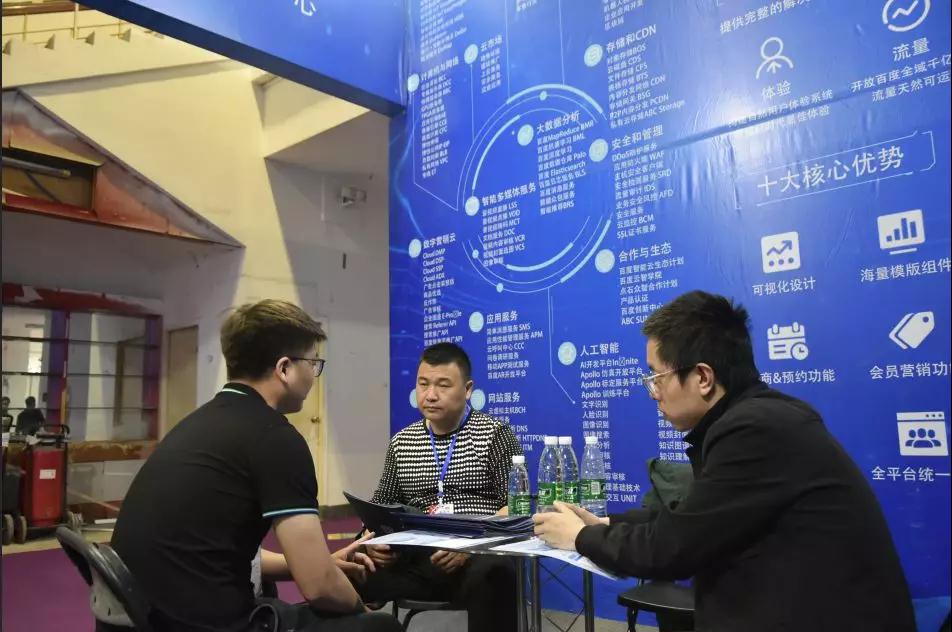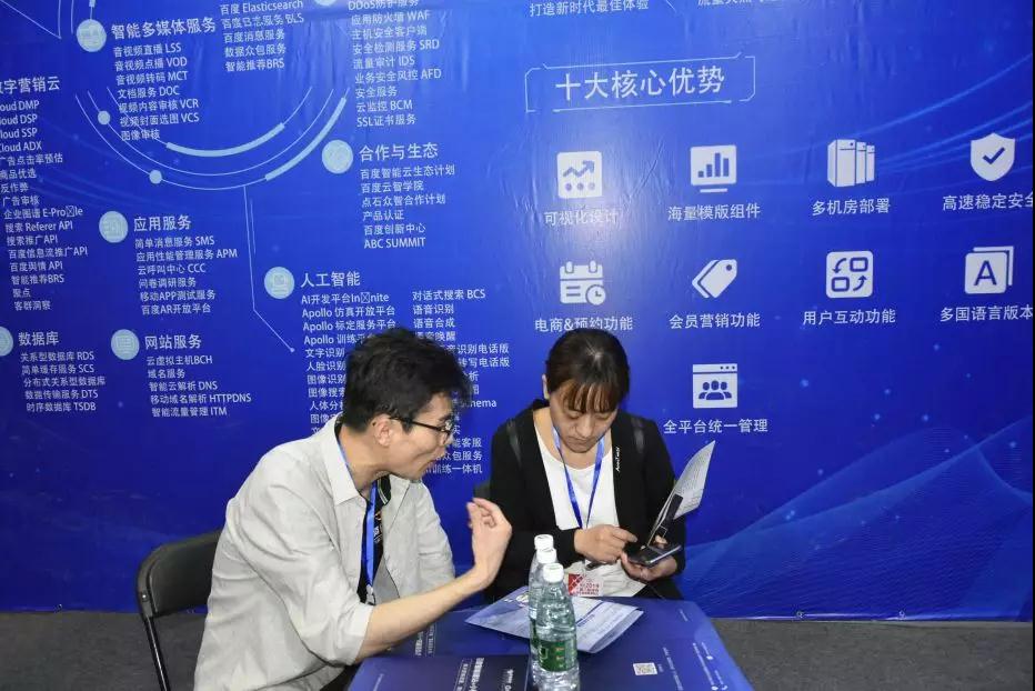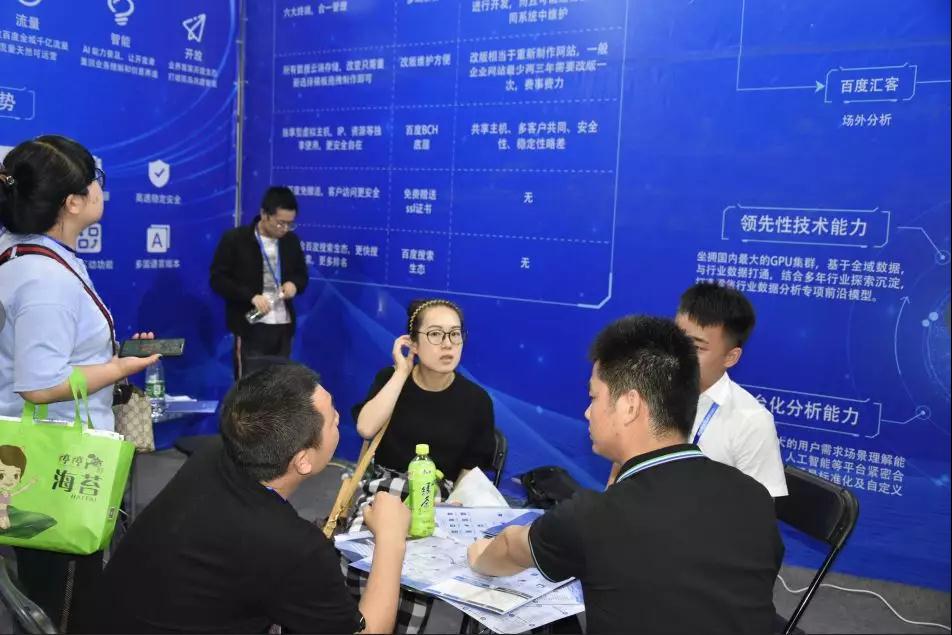 在大会上,腾佑科技展区尤为火爆,吸引了众多参展人员前来咨询相关业务,有诸多企业对腾佑科技百度智能云智能建站+小程序+慧营销业务非常关注。