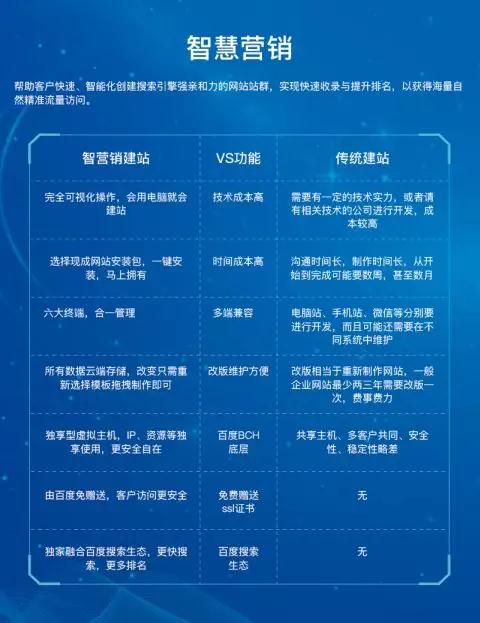腾佑科技顺应目前微商的市场发展趋势,整合新零售所需资源,带着百度智能云的最新产品——百度智能云智能建站亮相本次微商博览会,针对微商这个业务群体,腾佑科技有备而来,推出智能建站+小程序+慧营销套餐,以帮助客户快速、智能化创建搜索引擎强亲和力的网站站群,实现快速收录与提升排名,以获得海量自然精准流量访问,免费多机房部署。