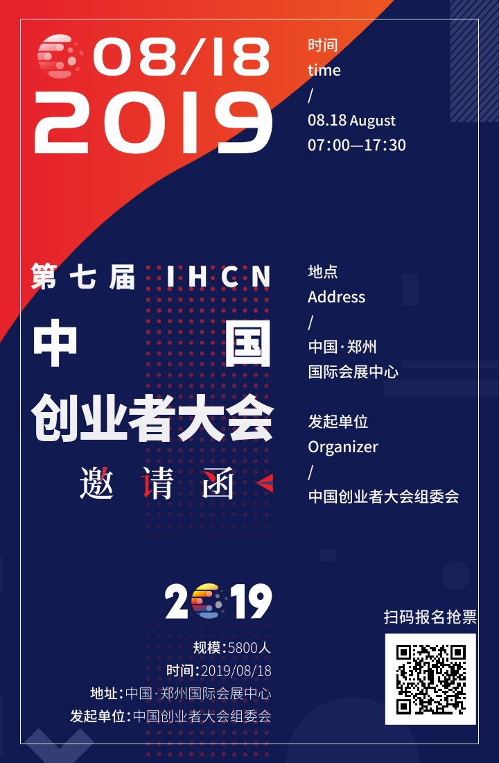 简述:备受瞩目的第七届中国创业者大会,将于2019年8月18日在中国郑州举行。本届大会以“创新、创业、创造”为主题,届时将有来自国内外62个城市的企业家和创业者参会。优化创业环境,积聚创新资源,为创新谋发展