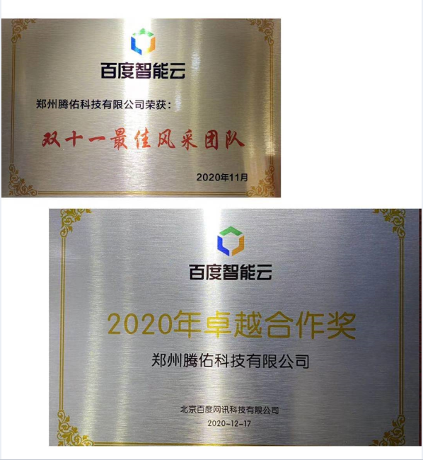 腾佑科技作为百度智能云河南服务中心受邀参会并荣获“百度智能云2020年卓越合作奖”。