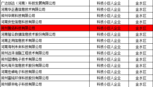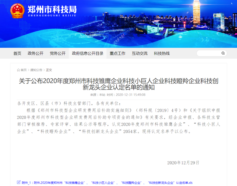 2020年度郑州市“科技雏鹰企业”、“科技小巨人企业”、“科技瞪羚企业”、“科技创新龙头企业”认定名单