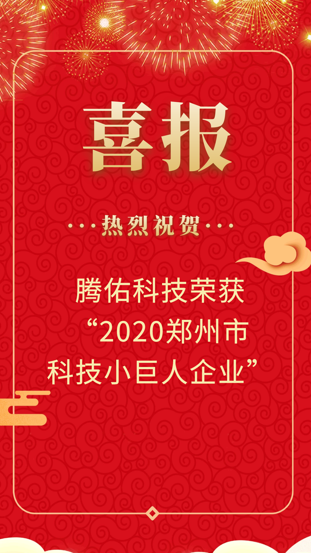 【喜报】恭喜腾佑科技荣获2020年郑州市“科技小巨人企业”认定