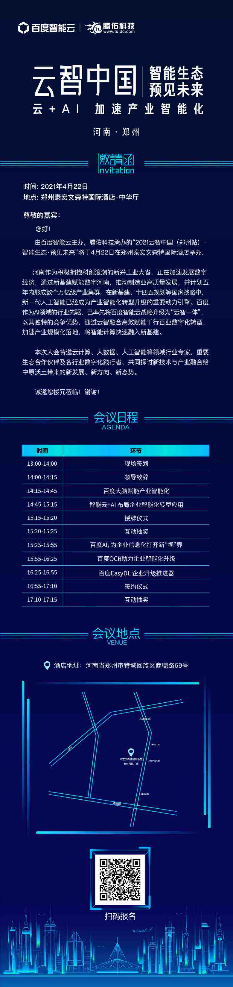2018年12月20日至22日,由郑州市人民政府主办,郑州市数字城市办公室、郑东新区管委会等联合举办的2018中国(郑州)新型智慧城市建设暨产业发展高峰论坛将于国际会展中心召开,会议主题为“新时代,新