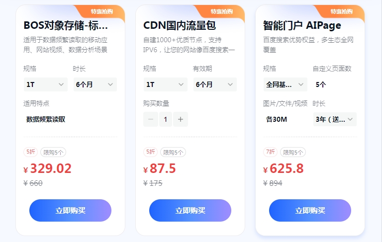 百度智能云新客专享优惠,年中盛惠好价限量抢购!具体活动规则留言咨询。
