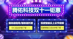 马上要11月11号啦,一年一度的双十一大会即将来临!腾佑科技公司在这双十一特惠期间特意为广大新老客户,海内外侨胞做出本公司产品的优惠活动。活动 产品如下: 服务器租用活动...